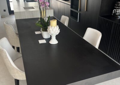 Stunning custom made dining tables for the restaurant Olivias La Cala.